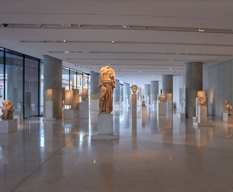 Η έκθεση του Μουσείου κορυφώνεται στον τρίτο όροφο, ο οποίος διαμορφώθηκε ειδικά για να υποδεχθεί τα γλυπτά του Παρθενώνα.