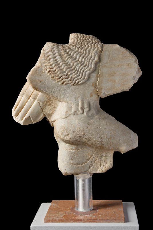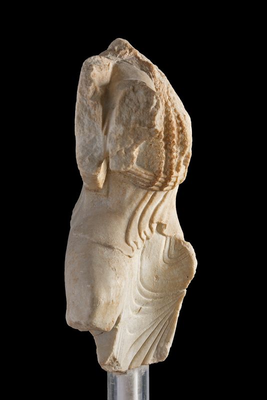 Κορμός μικρού αγάλματος Νίκης. Βρέθηκε το 1886 ή 1888 νοτιοδυτικά του Παρθενώνα σε τρία τμήματα που συγκολλήθηκαν.