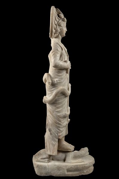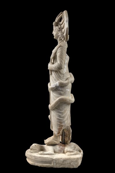 Το άγαλμα παριστάνει αιγυπτιακή θεότητα, όπως δείχνει η βάση με τον ξαπλωμένο κροκόδειλο, το ιερό ζώο των Αιγυπτίων, στη ράχη του οποίου πατά. Η μορφή φορά μακρύ ένδυμα που αγκαλιάζει το σώμα και από πάνω θώρακα με φολίδες και κυκλικό κόσμημα στο κέντρο. Στα χέρια κρατά κλαδιά φοίνικα, ενώ στο κάτω μέρος του κορμού τυλίγεται φίδι, το κεφάλι του οποίου έχει χαθεί. Το κεφάλι της μορφής προβάλει πάνω σε ηλιακό δίσκο με δώδεκα ακτίνες. Φορά στεφάνι με καρπούς και φύλλα κισσού, στάχυα στην κορυφή και τσαμπιά σταφυλιών στα πλάγια. Τα πόδια, καμωμένα από διαφορετικό μάρμαρο, ίσως αποτέλεσαν μεταγενέστερη προσθήκη, όταν τα αυθεντικά καταστράφηκαν.