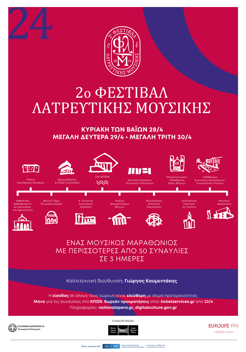 Για περισσότερες πληροφορίες σχετικά με το 2ο Φεστιβάλ Λατρευτικής Μουσικής: NATIONALOPERA.GR & DIGITALCULTURE.GOV.GR
