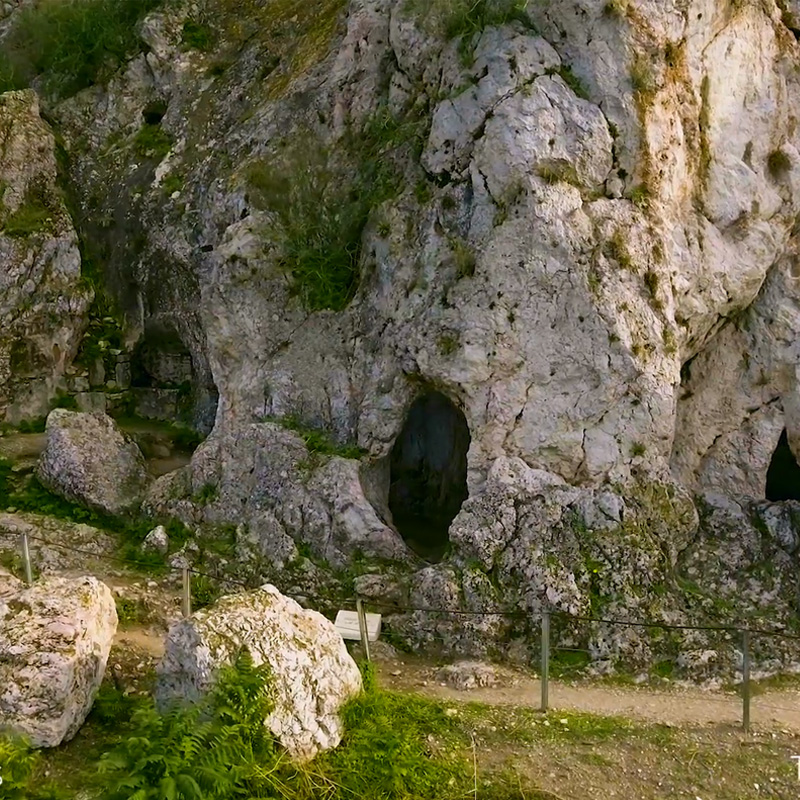 Τα σπήλαια της Ακρόπολης βρίσκονται στο ίδιο περίπου υψόμετρο. Δημιουργήθηκαν από την διάβρωση του νερού, όταν σε παλαιότερη γεωλογική περίοδο η στάθμη του βρισκόταν σε αυτό το επίπεδο. Ένα κυκλικό μονοπάτι, μήκους 1.100 μέτρων, ο λεγόμενος περίπατος, διευκόλυνε την πρόσβαση σε αυτά τα σπήλαια, ορισμένα από τα οποία μετατράπηκαν σε παρεκκλήσια, κατά τους χριστιανικούς χρόνους.