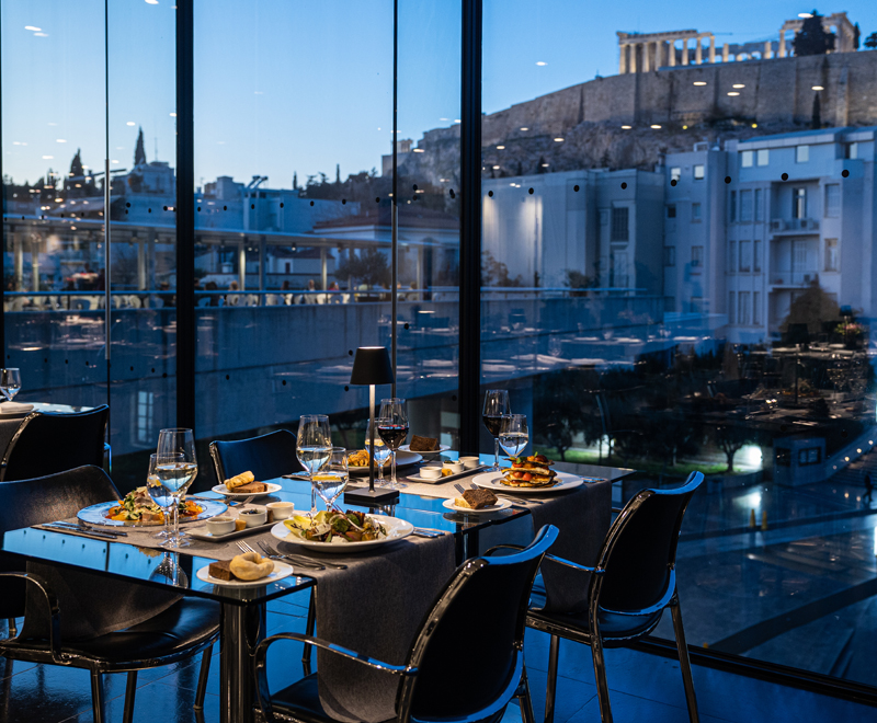 Every Friday and Saturday, the restaurant on the Museum’s second floor operates until 12 midnight and offers a special menu based on traditional recipes with particular emphasis on local, protected-designation-of-origin (POP) products, selected from the rich variety of ingredients that the Greek landscape provides.