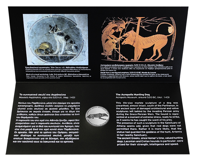 On the occasion of this annual celebration, the Acropolis Museum will distribute commemorative medallions, produced in collaboration with the Greek National Mint, bearing a design inspired by the hunting dog sculpture (520 BC) displayed in the Museum’s Archaic Gallery.