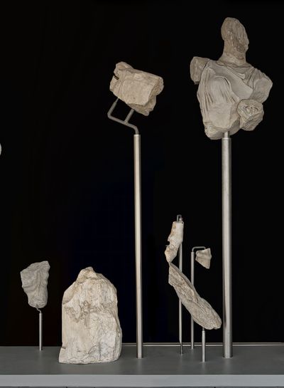 Fragments of horse's legs: 0.215 x 0.122 x 0.16 m and 0.435 x 0.142 x 0.15 m and 0.48 x 0.295 x 0.228 m