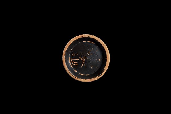Μετά το ψήσιμο, στην εξωτερική επιφάνεια της βάσης, χαράχτηκαν με αιχμηρό εργαλείο τα γράμματα ΕΥ.