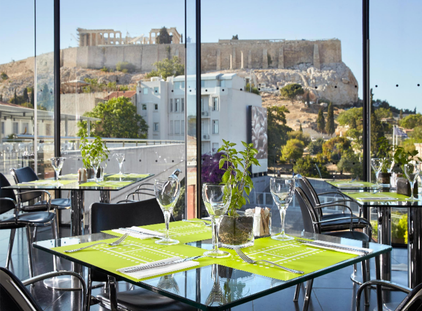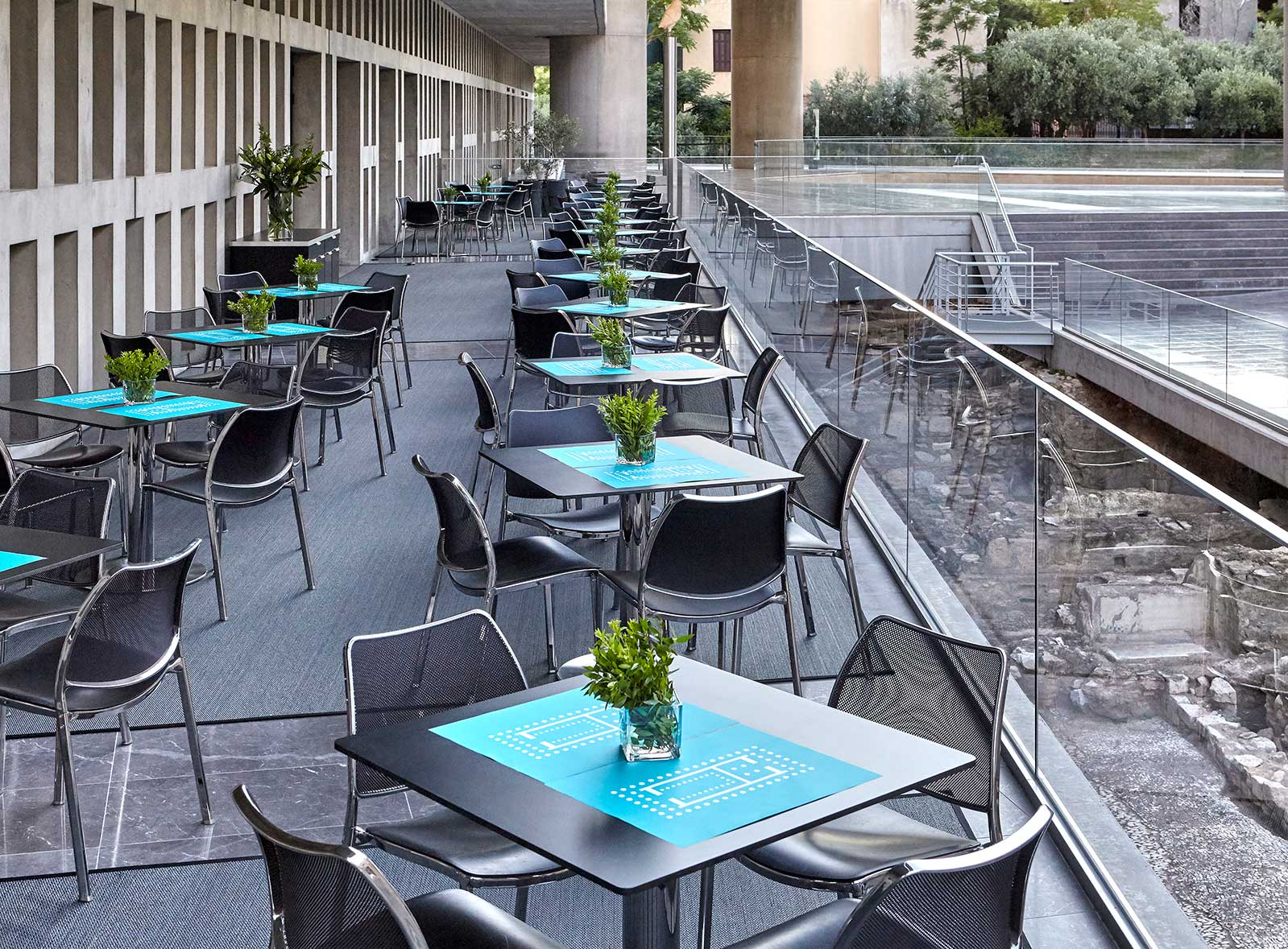 Το εστιατόριο του Μουσείου διαθέτει πανοραμική θέα στην Ακρόπολη και μπορεί να φιλοξενήσει μέχρι 300 καθήμενα άτομα στον εσωτερικό χώρο. Για εκδηλώσεις κατά τις οποίες οι καλεσμένοι είναι όρθιοι, ο αριθμός αυξάνεται στα 400 άτομα για τον εσωτερικό ή εξωτερικό χώρο του εστιατορίου.