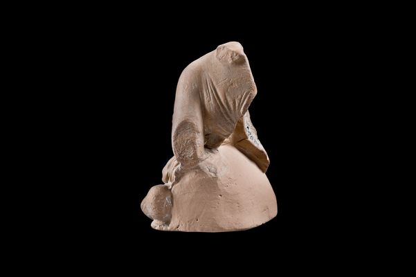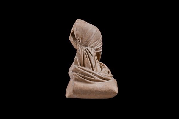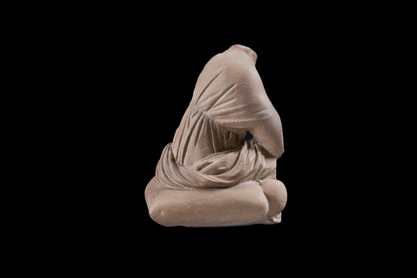 Ειδώλιο νεαρής γυναίκας που κάθεται σε μαξιλάρι. Βρέθηκε στις ανασκαφές της Ακρόπολης. Η μορφή κάθεται σε μαξιλάρι και σκύβει ελαφρά προς τα μπροστά. Φοράει χιτώνα που είναι δεμένος κάτω από το στήθος ενώ γύρω από τους γοφούς της είναι χαλαρά τυλιγμένο το ιμάτιό της. Διατηρούνται ίχνη λευκού επιχρίσματος.