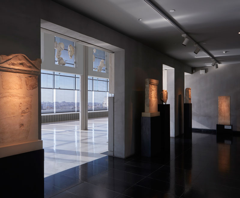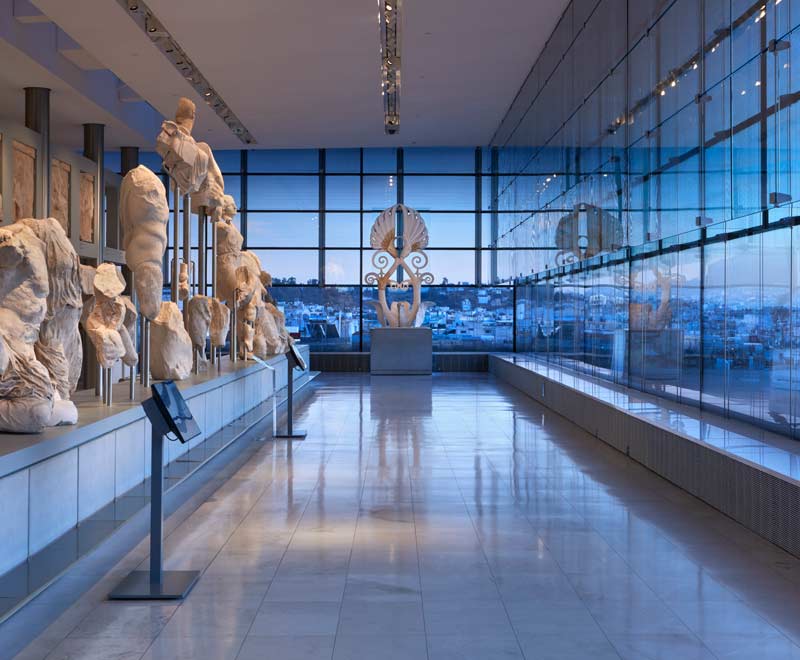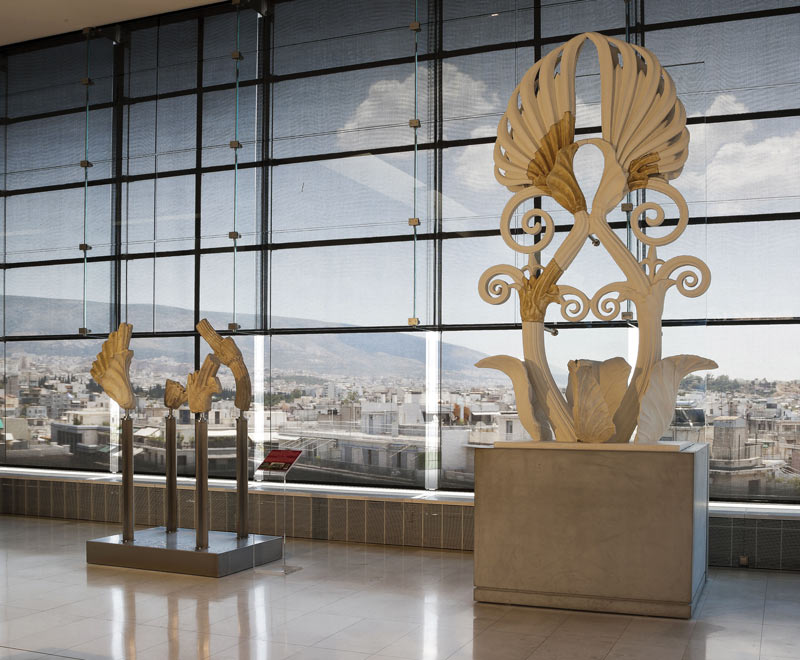Στο αίθριο και τον νότιο προθάλαμο της αίθουσας του Παρθενώνα παρουσιάζονται εκθέματα που δίνουν πληροφορίες για την κατασκευή του χρυσελεφάντινου αγάλματος της Αθηνάς Παρθένου, για τη λειτουργία του ιερού της Ακρόπολης και των δημοκρατικών θεσμών της πόλης, καθώς και για την πολιτική κατάσταση που επικρατεί στην Αθήνα την εποχή που κατασκευάζεται ο μεγάλος ναός.