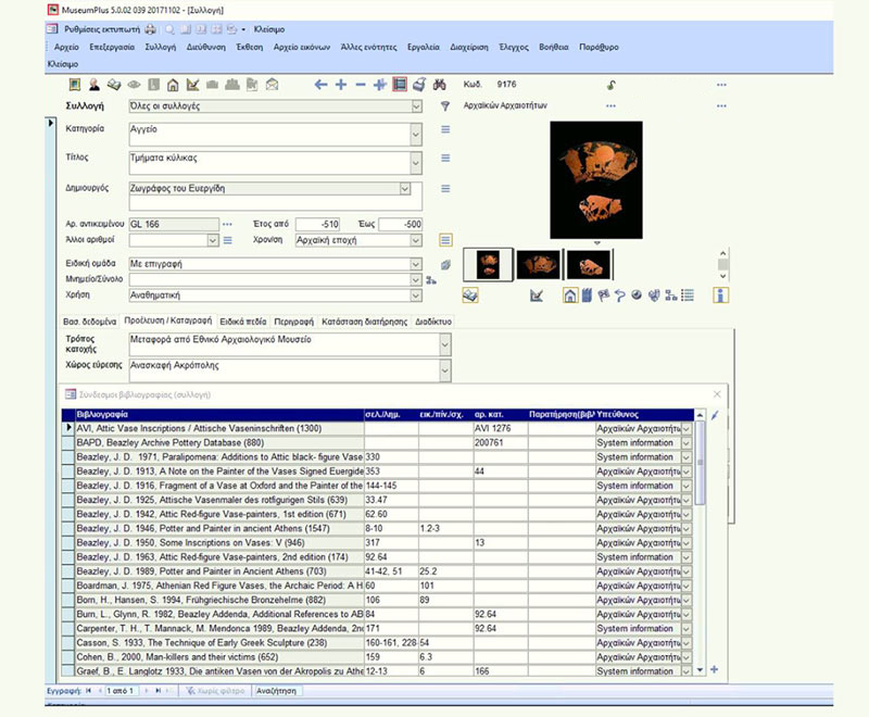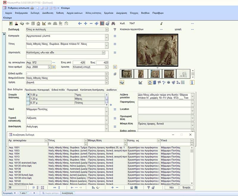 Το 2014, το Μουσείο Ακρόπολης απέκτησε το ΜuseumPlus, ένα ειδικά σχεδιασμένο σύστημα τεκμηρίωσης και διαχείρισης μουσειακών συλλογών. Μετά την παραμετροποίηση του λογισμικού, σύμφωνα με τις οδηγίες του Τμήματος Αρχαιολογικών Συλλογών που το διαχειρίζεται, διαμορφώθηκε ένα λειτουργικό εργαλείο για την πλήρη ηλεκτρονική τεκμηρίωση των συλλογών του Μουσείου.