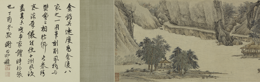 Το δεύτερο έργο τέχνης είναι ένας εικονογραφημένος χάρτινος κύλινδρος του Κινέζου ζωγράφου Wu Hong της Δυναστείας των Τσίνγκ (17ος αι. μ.Χ.) με τίτλο «Ταξιδεύοντας κατά μήκος του Διάφανου Ποταμού». Ο κύλινδρος απεικονίζει ένα ειρηνικό τοπίο με βουνά, ποτάμια, αγροικίες, περίπτερα, γέφυρες, βάρκες και ανθρώπινες μορφές ανάμεσά τους, περιγράφοντας έναν κόσμο ιδεατό ή έναν παράδεισο, που στα κινεζικά ονομάζεται shi-wai-tao-yuan. Η λεπτότητα και η ακρίβεια της πινελιάς του καλλιτέχνη προσδίδουν μοναδική αξία στο έργο αυτό, στο οποίο κυριαρχεί η ρεαλιστική απόδοση ενός τοπίου που μπορεί κανείς να δει, να περιπλανηθεί σε αυτό και να το βιώσει.