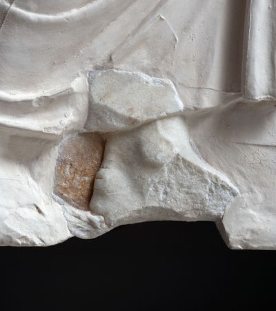 Θραύσμα με ένδυμα της Αφροδίτης και κάθισμα: 0,33 x 0,29 μ.