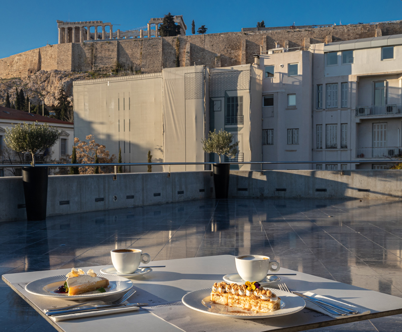 Το εστιατόριο και το καφέ του Μουσείου σερβίρουν ελληνικό παραδοσιακό πρωινό καθημερινά έως τις 12 το μεσημέρι.
