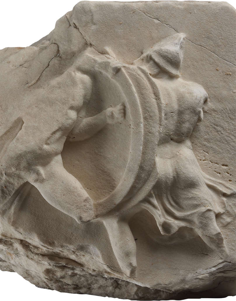 Από τα αετώματα διασώζονται ελάχιστα τμήματα. Πιθανολογείται ότι το δυτικό εικονίζει τη νίκη των Ολύμπιων θεών εναντίον των Γιγάντων (Γιγαντομαχία) και το ανατολικό τη νίκη των Αθηναίων εναντίον των Αμαζόνων (Αμαζονομαχία).