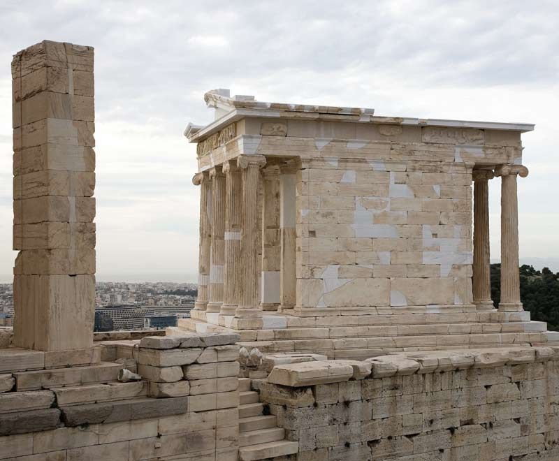 Ο ναός της Αθηνάς Νίκης κατασκευάζεται ανάμεσα στο 426 και το 421 π.Χ. πάνω στον πύργο της νοτιοδυτικής άκρης της Ακρόπολης, σύμφωνα με τα σχέδια του αρχιτέκτονα Καλλικράτη. Αντικαθιστά αρχαιότερους ναούς που τα κατάλοιπά τους διατηρούνται στο εσωτερικό του πύργου.
