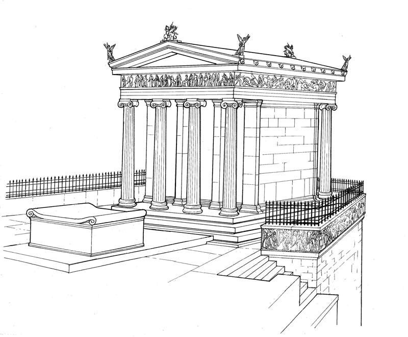 Ο ναός είναι ιωνικού ρυθμού και έχει ανάγλυφη ζωφόρο με διαφορετικές παραστάσεις σε κάθε πλευρά. Στην ανατολική εικονίζεται σύναξη θεών γύρω από τον ένθρονο Δία, ενώ στις άλλες αναπτύσσονται σκηνές μάχης Ελλήνων με Πέρσες και Ελλήνων με άλλους Έλληνες. Στη νότια πλευρά εικονίζεται η νικηφόρα μάχη των Ελλήνων κατά των Περσών στον Μαραθώνα, το 490 π.Χ., στην οποία πρωτοστατούν οι Αθηναίοι.