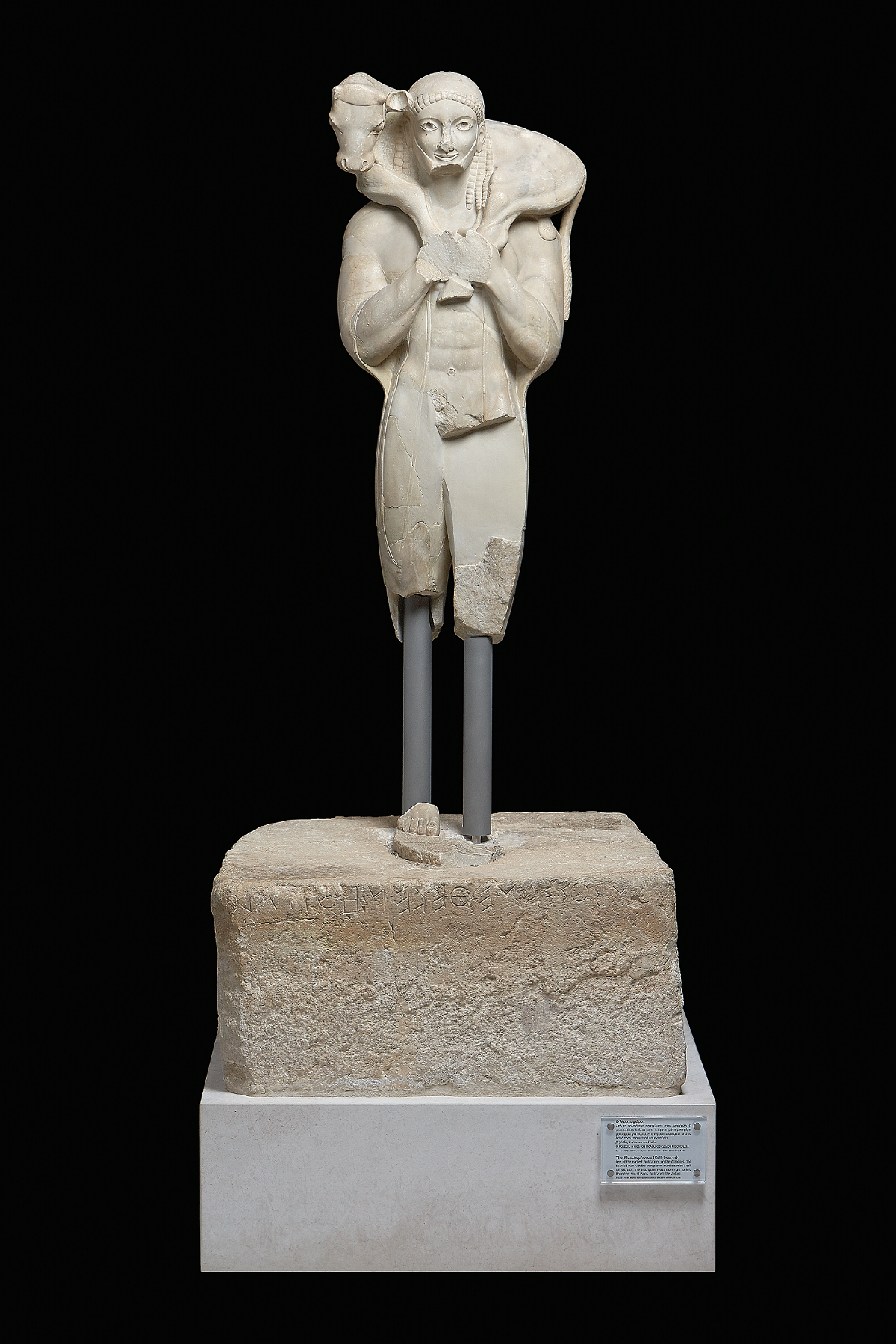 Ο Μοσχοφόρος, ένα από τα σπουδαιότερα γλυπτά της αρχαϊκής Ακρόπολης, απέκτησε πρόσφατα νέα μορφή. Τα ογκώδη στηρίγματα των ποδιών του αντικαταστάθηκαν με ανάλαφρα μεταλλικά που βελτιώνουν σημαντικά την αισθητική έκθεσης του γλυπτού. Οι επισκέπτες θα έχουν την ευκαιρία να μάθουν από τους Συντηρητές του Μουσείου κρυφές πτυχές πίσω από αυτή την διαδικασία επανέκθεσης. Η θεματική παρουσίαση «Ο Μοσχοφόρος: ένα αριστούργημα της Ακρόπολης ξαναστήνεται» πραγματοποιείται στο πλαίσιο της εκδήλωσης Διεθνής Ημέρα Μουσείων 2014.
