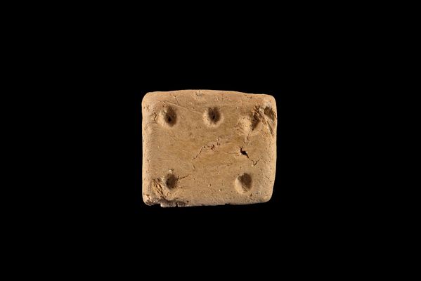 Πρόκειται για μεγάλο εξάπλευρο κύβο με σήμανση από το ένα έως το έξι. Κάθε έδρα έχει εμπίεστους κύκλους και το άθροισμα των κύκλων των απέναντι πλευρών που προκύπτει είναι επτά, όπως και στα σημερινά ζάρια.